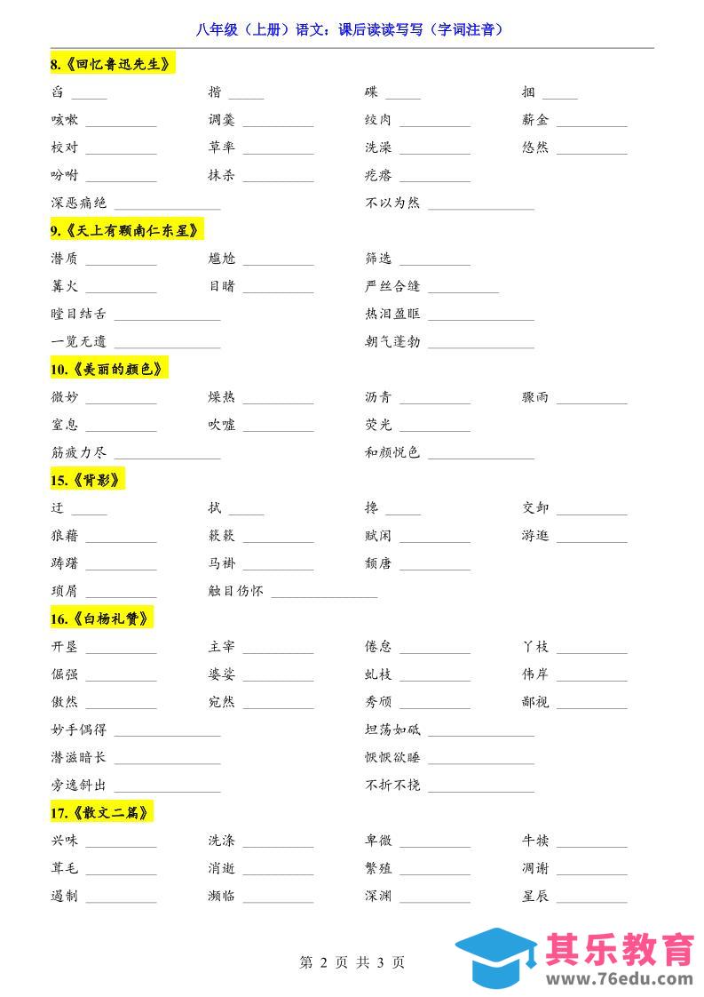 新八年级上语文课后读读写写(字词注音)中小学资料库1年前发布关注私信2111新八年级上语文课后读读写写(字词注音)此内容为免费资源,请登录后查看¥0限时特惠¥99 登录查看免费资源 ——预览已结束,还剩1页未读——您已获得此文档下载权限,请点击底部下载完整文档 © 版权声明文章版权归作者所有,未经允许请勿转载。THE END八年级# 语文# 八年级 喜欢就支持一下吧点赞11 分享QQ空间微博QQ好友海报分享复制链接收藏