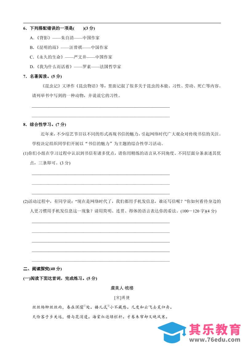 八年级上语文第4单元测试卷中小学资料库1年前发布关注私信408八年级上语文第4单元测试卷此内容为免费资源,请登录后查看¥0限时特惠¥99 登录查看免费资源 ——预览已结束,还剩7页未读——您已获得此文档下载权限,请点击底部下载完整文档 © 版权声明文章版权归作者所有,未经允许请勿转载。THE END八年级# 语文# 八年级 喜欢就支持一下吧点赞8 分享QQ空间微博QQ好友海报分享复制链接收藏