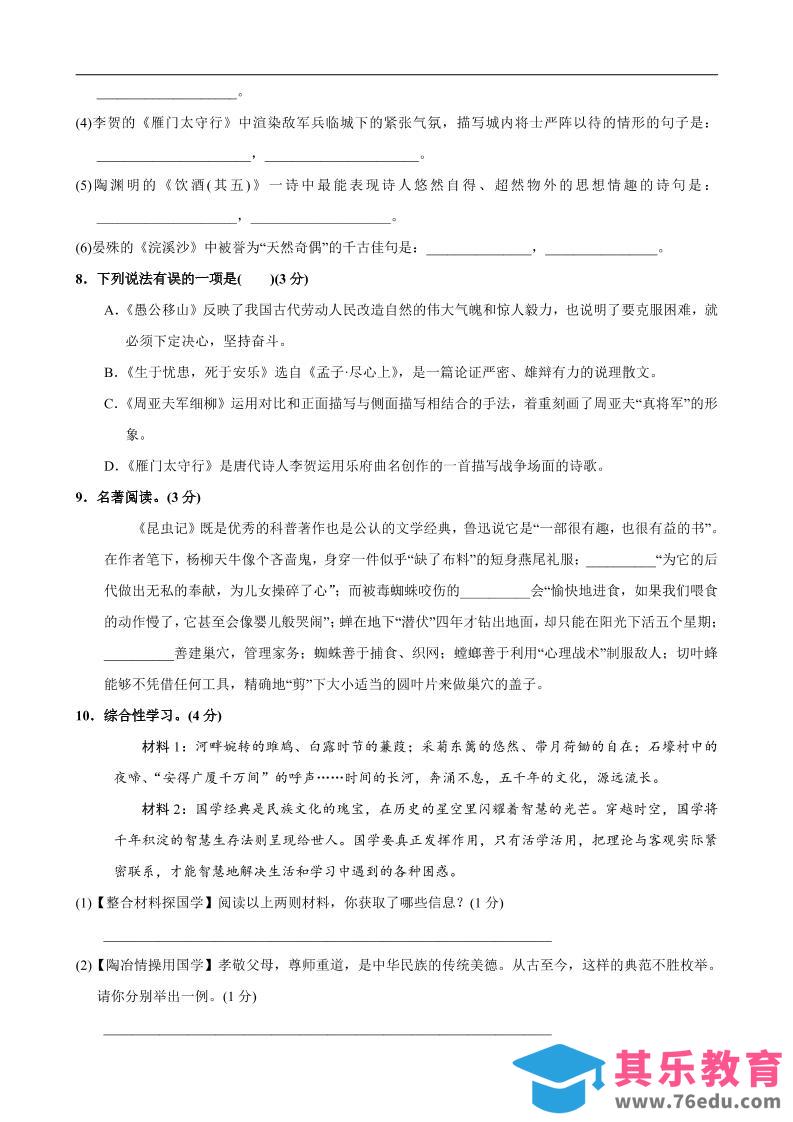 八年级上语文第6单元测试卷中小学资料库2年前发布关注私信248八年级上语文第6单元测试卷此内容为免费资源,请登录后查看¥0限时特惠¥99 登录查看免费资源 ——预览已结束,还剩7页未读——您已获得此文档下载权限,请点击底部下载完整文档 © 版权声明文章版权归作者所有,未经允许请勿转载。THE END八年级# 语文# 八年级 喜欢就支持一下吧点赞8 分享QQ空间微博QQ好友海报分享复制链接收藏