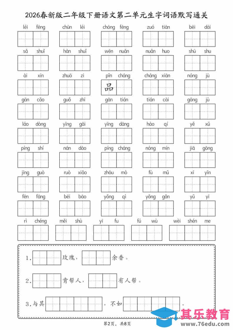 二年级下语文26春1-8单元生字词语默写通关(8页)中小学资料库3小时前发布关注私信419二年级下语文26春1-8单元生字词语默写通关(8页)此内容为免费资源,请登录后查看¥0限时特惠¥99 登录查看免费资源 ——预览已结束,还剩6页未读——您已获得此文档下载权限,请点击底部下载完整文档 © 版权声明文章版权归作者所有,未经允许请勿转载。THE END二年级# 语文# 二年级 喜欢就支持一下吧点赞9 分享QQ空间微博QQ好友海报分享复制链接收藏
