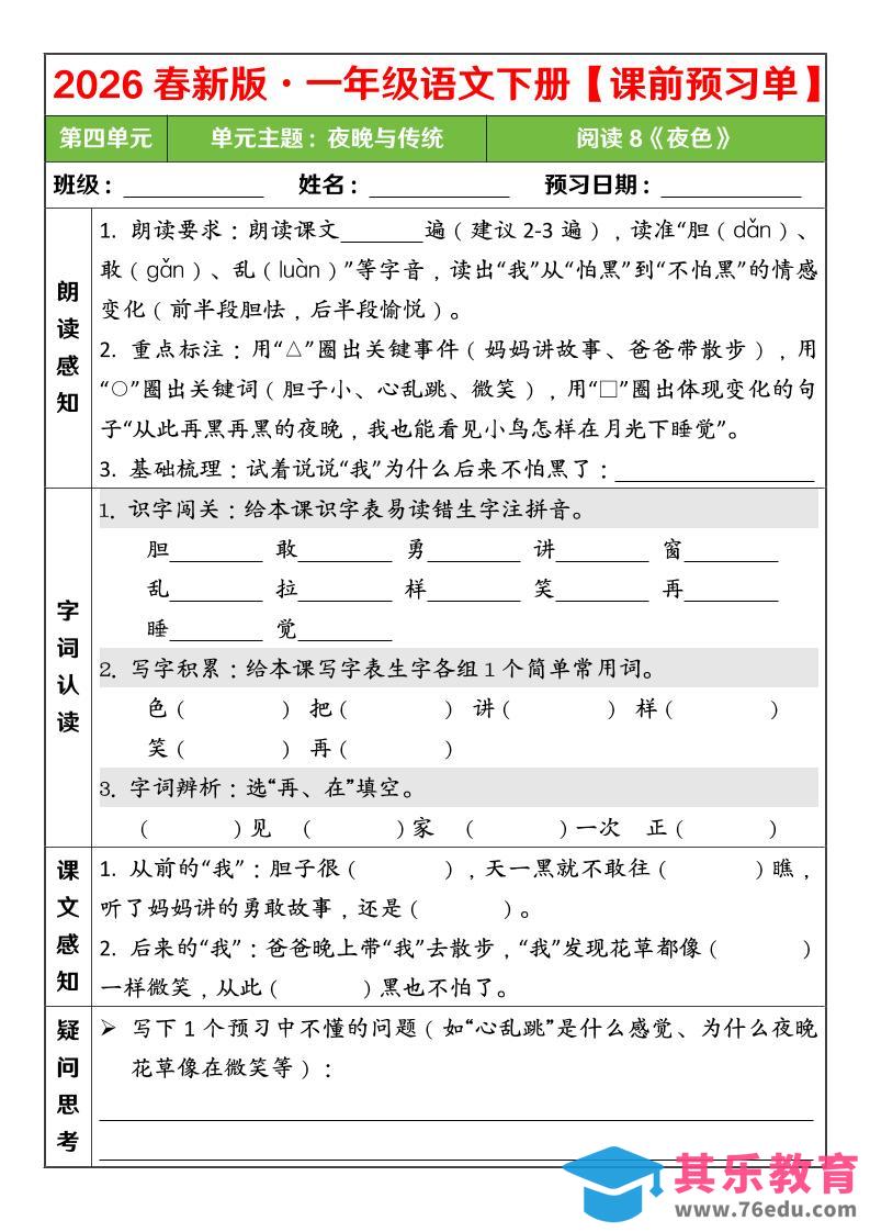 一年级下语文26春第四单元课前预习单中小学资料库1小时前发布关注私信386一年级下语文26春第四单元课前预习单此内容为免费资源,请登录后查看¥0限时特惠¥99 登录查看免费资源 ——预览已结束,还剩2页未读——您已获得此文档下载权限,请点击底部下载完整文档 © 版权声明文章版权归作者所有,未经允许请勿转载。THE END一年级# 语文# 一年级 喜欢就支持一下吧点赞6 分享QQ空间微博QQ好友海报分享复制链接收藏