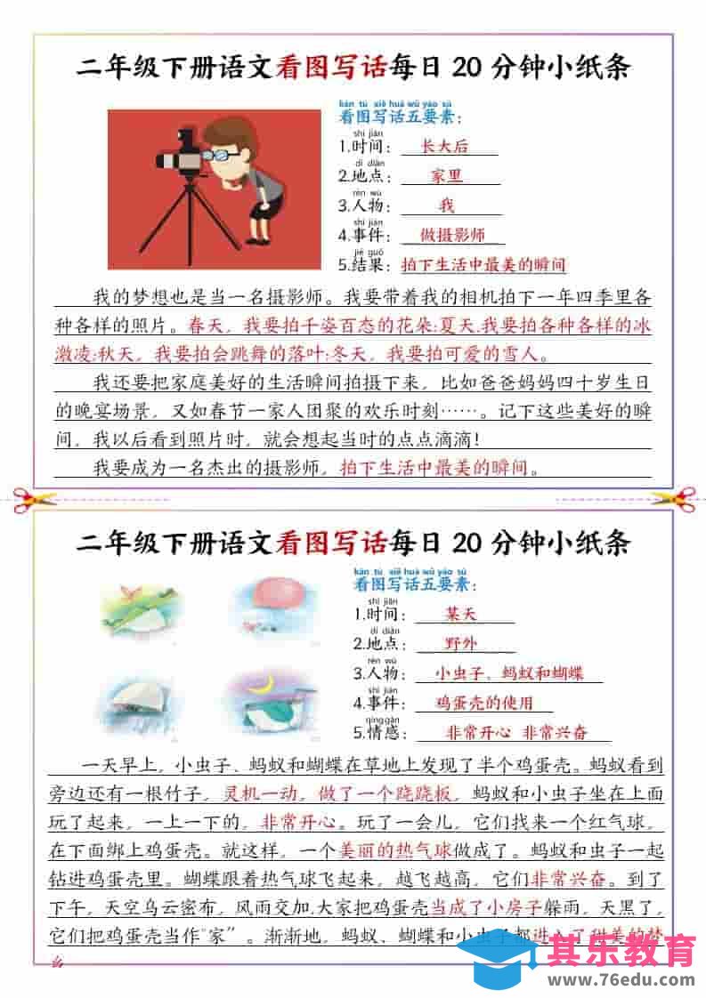 二年级下语文看图写话每日一练范文中小学资料库2小时前发布关注私信3314二年级下语文看图写话每日一练范文此内容为免费资源,请登录后查看¥0限时特惠¥99 登录查看免费资源 ——预览已结束,还剩9页未读——您已获得此文档下载权限,请点击底部下载完整文档 © 版权声明文章版权归作者所有,未经允许请勿转载。THE END二年级# 语文# 二年级 喜欢就支持一下吧点赞14 分享QQ空间微博QQ好友海报分享复制链接收藏