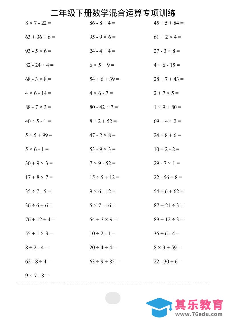 二年级下数学混合运算专项训练中小学资料库1小时前发布关注私信5011二年级下数学混合运算专项训练此内容为免费资源,请登录后查看¥0限时特惠¥99 登录查看免费资源 ——预览已结束,还剩18页未读——您已获得此文档下载权限,请点击底部下载完整文档 © 版权声明文章版权归作者所有,未经允许请勿转载。THE END二年级# 数学# 二年级 喜欢就支持一下吧点赞11 分享QQ空间微博QQ好友海报分享复制链接收藏