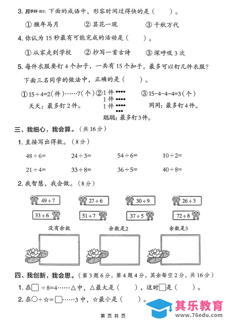 二年级下数学第三单元质量检测卷中小学资料库3小时前发布关注私信299二年级下数学第三单元质量检测卷此内容为免费资源,请登录后查看¥0限时特惠¥99 登录查看免费资源 ——预览已结束,还剩3页未读——您已获得此文档下载权限,请点击底部下载完整文档 © 版权声明文章版权归作者所有,未经允许请勿转载。THE END五年级# 数学# 二年级 喜欢就支持一下吧点赞9 分享QQ空间微博QQ好友海报分享复制链接收藏