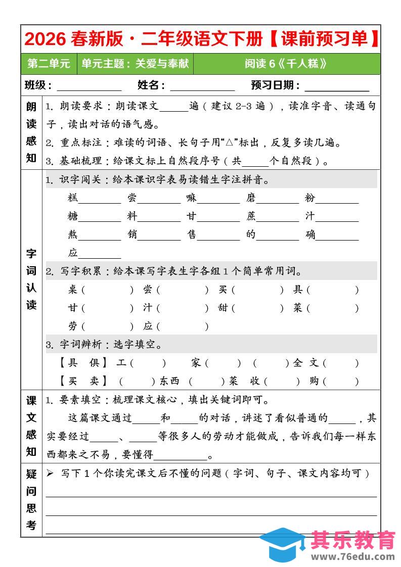 二年级下语文26春第二单元课前预习单中小学资料库3小时前发布关注私信2712二年级下语文26春第二单元课前预习单此内容为免费资源,请登录后查看¥0限时特惠¥99 登录查看免费资源 ——预览已结束,还剩2页未读——您已获得此文档下载权限,请点击底部下载完整文档 © 版权声明文章版权归作者所有,未经允许请勿转载。THE END五年级# 语文# 二年级 喜欢就支持一下吧点赞12 分享QQ空间微博QQ好友海报分享复制链接收藏