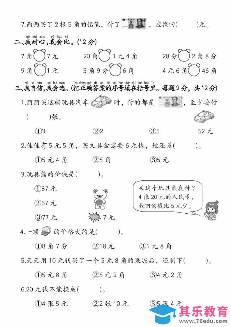 一年级下数学《人民币》专项检测卷中小学资料库1小时前发布关注私信3613一年级下数学《人民币》专项检测卷此内容为免费资源,请登录后查看¥0限时特惠¥99 登录查看免费资源 ——预览已结束,还剩2页未读——您已获得此文档下载权限,请点击底部下载完整文档 © 版权声明文章版权归作者所有,未经允许请勿转载。THE END四年级# 数学# 一年级 喜欢就支持一下吧点赞13 分享QQ空间微博QQ好友海报分享复制链接收藏