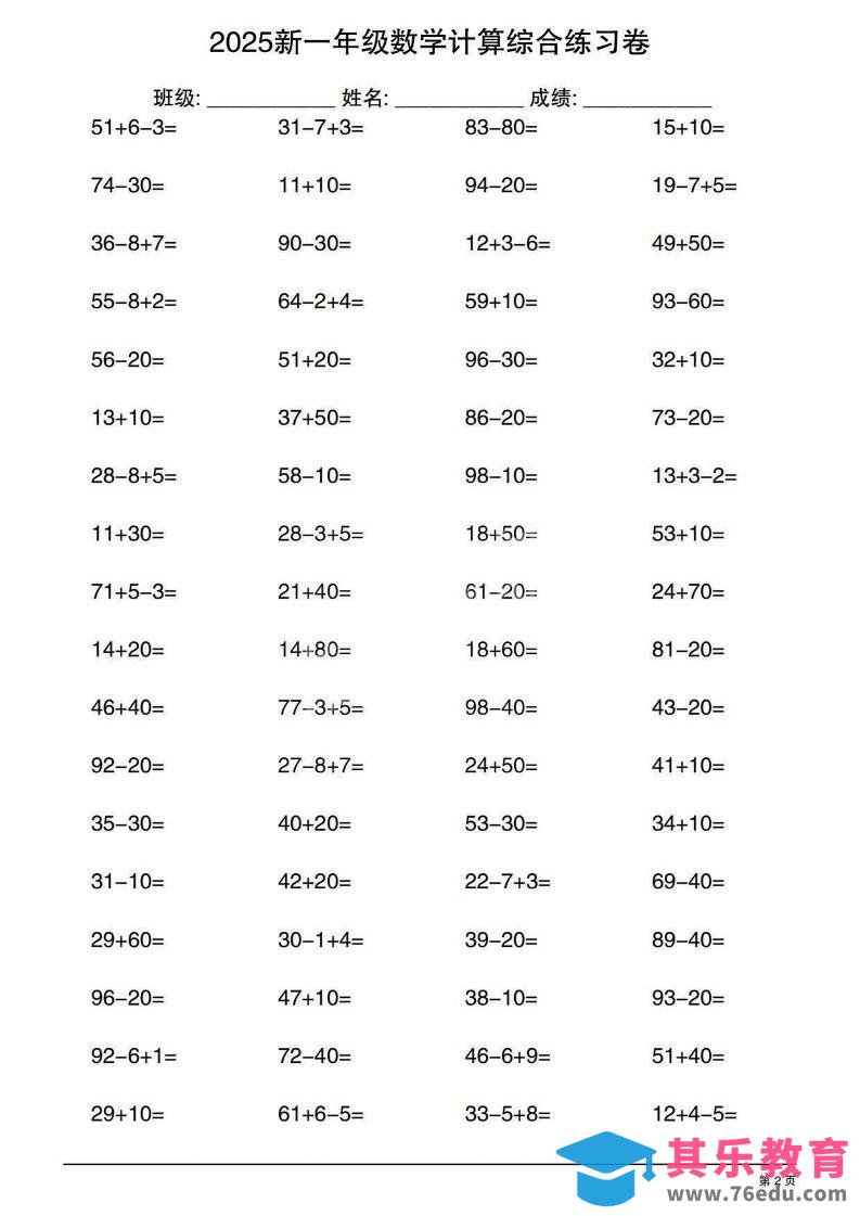 一年级下数学100以内计算综合练习卷中小学资料库2个月前发布关注私信2713一年级下数学100以内计算综合练习卷此内容为免费资源,请登录后查看¥0限时特惠¥99 登录查看免费资源 ——预览已结束,还剩18页未读——您已获得此文档下载权限,请点击底部下载完整文档 © 版权声明文章版权归作者所有,未经允许请勿转载。THE END一年级# 数学# 一年级 喜欢就支持一下吧点赞13 分享QQ空间微博QQ好友海报分享复制链接收藏
