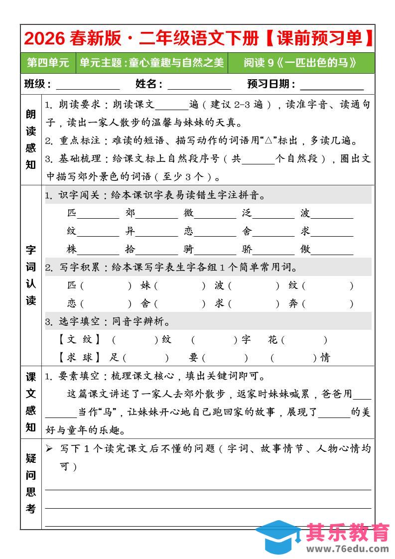 二年级下语文26春第四单元课前预习单中小学资料库1小时前发布关注私信399二年级下语文26春第四单元课前预习单此内容为免费资源,请登录后查看¥0限时特惠¥99 登录查看免费资源 ——预览已结束,还剩2页未读——您已获得此文档下载权限,请点击底部下载完整文档 © 版权声明文章版权归作者所有,未经允许请勿转载。THE END五年级# 语文# 二年级 喜欢就支持一下吧点赞9 分享QQ空间微博QQ好友海报分享复制链接收藏