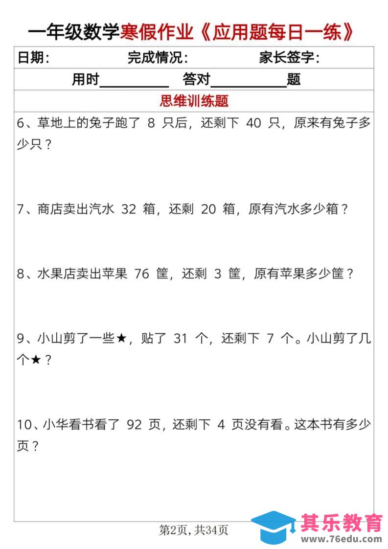 一年级上数学寒假作业《应用题每日一练》34页中小学资料库2年前发布关注私信3611一年级上数学寒假作业《应用题每日一练》34页此内容为免费资源,请登录后查看¥0限时特惠¥99 登录查看免费资源 ——预览已结束,还剩32页未读——您已获得此文档下载权限,请点击底部下载完整文档 © 版权声明文章版权归作者所有,未经允许请勿转载。THE END一年级# 数学# 一年级 喜欢就支持一下吧点赞11 分享QQ空间微博QQ好友海报分享复制链接收藏