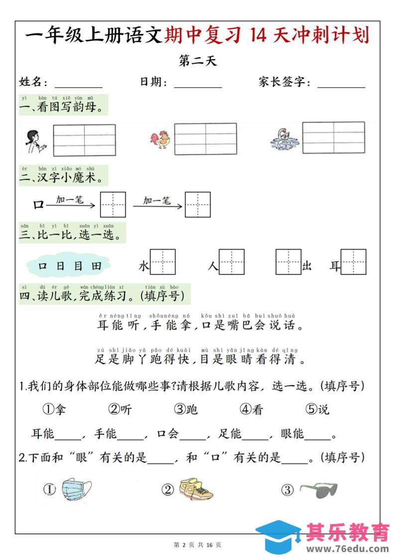 25新一上语文期中复习14天冲刺计划(含答案16页)中小学资料库2年前发布关注私信241225新一上语文期中复习14天冲刺计划(含答案16页)此内容为免费资源,请登录后查看¥0限时特惠¥99 登录查看免费资源 ——预览已结束,还剩14页未读——您已获得此文档下载权限,请点击底部下载完整文档 © 版权声明文章版权归作者所有,未经允许请勿转载。THE END一年级# 语文# 一年级 喜欢就支持一下吧点赞12 分享QQ空间微博QQ好友海报分享复制链接收藏
