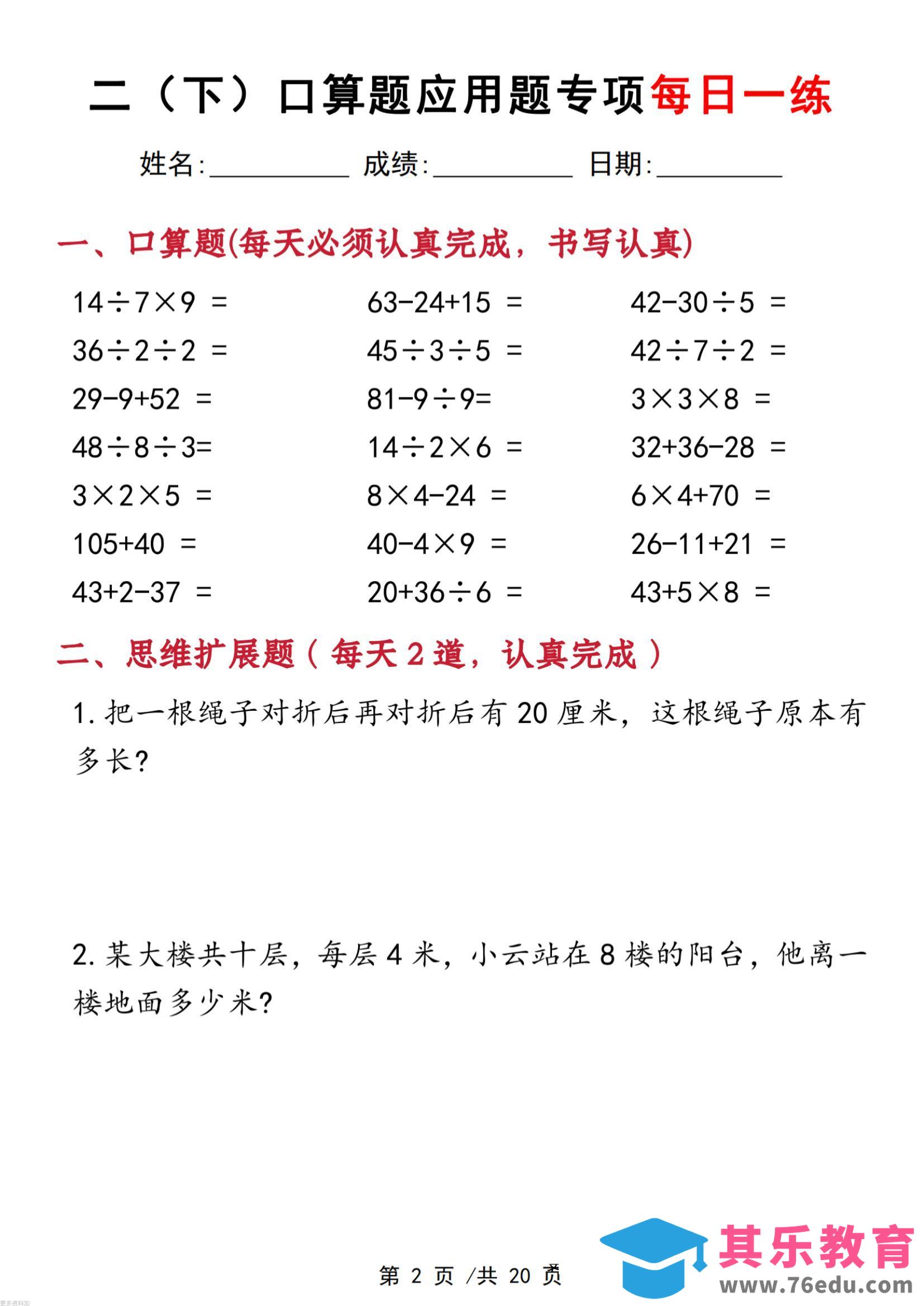 二年级下数学口算应用专项每日一练中小学资料库1个月前发布关注私信4912二年级下数学口算应用专项每日一练此内容为免费资源,请登录后查看¥0限时特惠¥99 登录查看免费资源 ——预览已结束,还剩38页未读——您已获得此文档下载权限,请点击底部下载完整文档 © 版权声明文章版权归作者所有,未经允许请勿转载。THE END二年级# 数学# 二年级 喜欢就支持一下吧点赞12 分享QQ空间微博QQ好友海报分享复制链接收藏