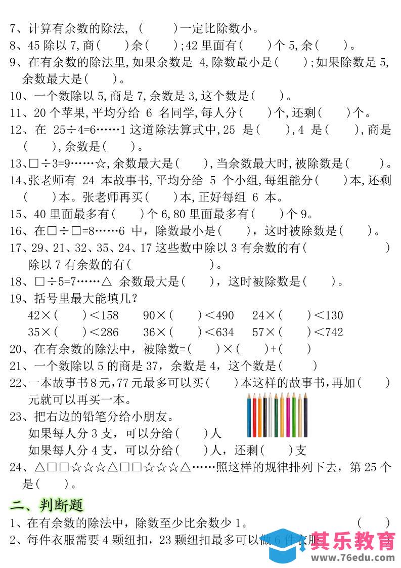 二年级下数学常考重点易错题《有余数的除法》中小学资料库2天前发布关注私信387二年级下数学常考重点易错题《有余数的除法》此内容为免费资源,请登录后查看¥0限时特惠¥99 登录查看免费资源 ——预览已结束,还剩10页未读——您已获得此文档下载权限,请点击底部下载完整文档 © 版权声明文章版权归作者所有,未经允许请勿转载。THE END二年级# 数学# 二年级 喜欢就支持一下吧点赞7 分享QQ空间微博QQ好友海报分享复制链接收藏