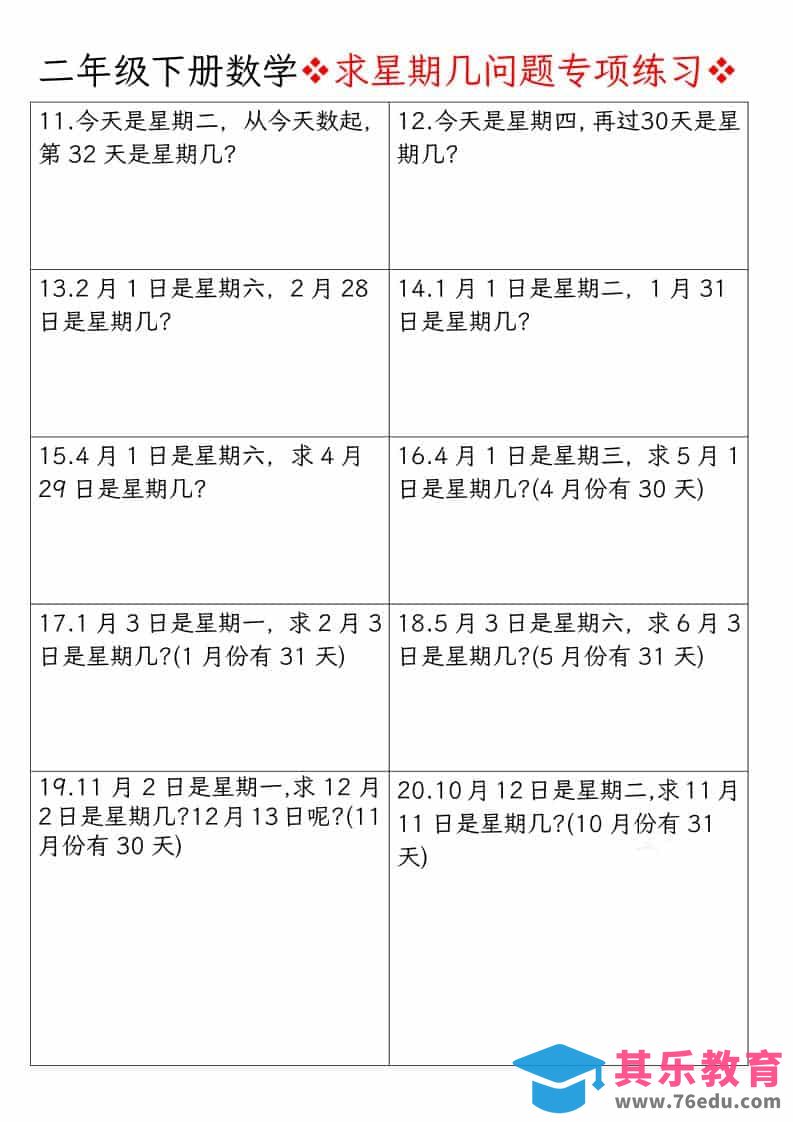 二年级下数学求星期几问题专项练习中小学资料库1年前发布关注私信215二年级下数学求星期几问题专项练习此内容为免费资源,请登录后查看¥0限时特惠¥99 登录查看免费资源 ——预览已结束,还剩2页未读——您已获得此文档下载权限,请点击底部下载完整文档 © 版权声明文章版权归作者所有,未经允许请勿转载。THE END二年级# 数学# 二年级 喜欢就支持一下吧点赞5 分享QQ空间微博QQ好友海报分享复制链接收藏