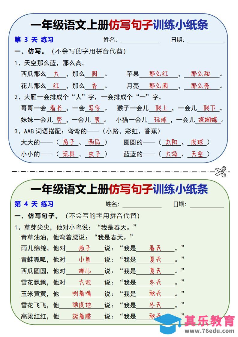 新一上语文仿写句子训练小纸条(含答案10页)中小学资料库1年前发布关注私信4812新一上语文仿写句子训练小纸条(含答案10页)此内容为免费资源,请登录后查看¥0限时特惠¥99 登录查看免费资源 ——预览已结束,还剩8页未读——您已获得此文档下载权限,请点击底部下载完整文档 © 版权声明文章版权归作者所有,未经允许请勿转载。THE END一年级# 语文# 一年级 喜欢就支持一下吧点赞12 分享QQ空间微博QQ好友海报分享复制链接收藏