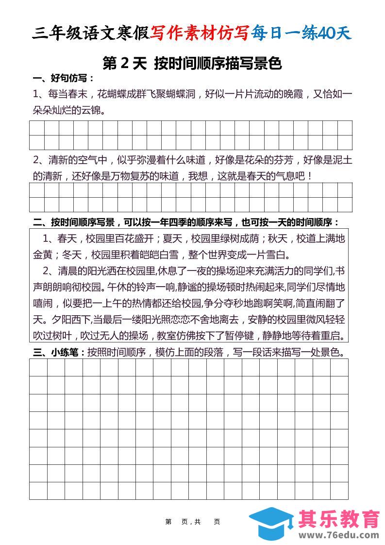 三年级语文下寒假写作素材仿写每日一练40天40页中小学资料库1个月前发布关注私信4410三年级语文下寒假写作素材仿写每日一练40天40页此内容为免费资源,请登录后查看¥0限时特惠¥99 登录查看免费资源 ——预览已结束,还剩38页未读——您已获得此文档下载权限,请点击底部下载完整文档 © 版权声明文章版权归作者所有,未经允许请勿转载。THE END三年级# 语文# 三年级 喜欢就支持一下吧点赞10 分享QQ空间微博QQ好友海报分享复制链接收藏