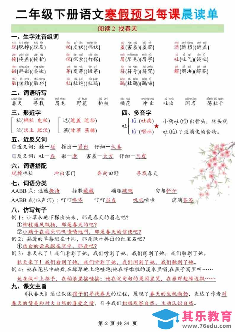二年级下语文26版新寒假预习每课晨读单中小学资料库6个月前发布关注私信3015二年级下语文26版新寒假预习每课晨读单此内容为免费资源,请登录后查看¥0限时特惠¥99 登录查看免费资源 ——预览已结束,还剩32页未读——您已获得此文档下载权限,请点击底部下载完整文档 © 版权声明文章版权归作者所有,未经允许请勿转载。THE END二年级# 语文# 二年级 喜欢就支持一下吧点赞15 分享QQ空间微博QQ好友海报分享复制链接收藏