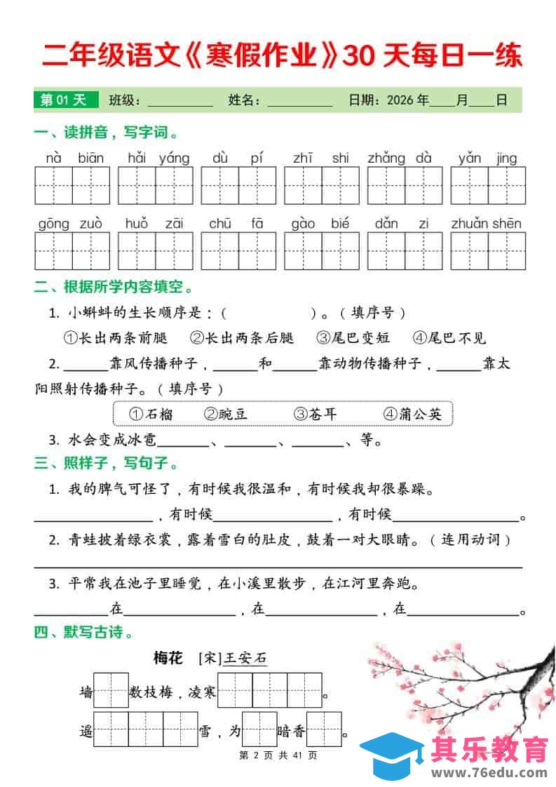 二年级下语文寒假作业每日一练30天中小学资料库1年前发布关注私信3913二年级下语文寒假作业每日一练30天此内容为免费资源,请登录后查看¥0限时特惠¥99 登录查看免费资源 ——预览已结束,还剩39页未读——您已获得此文档下载权限,请点击底部下载完整文档 © 版权声明文章版权归作者所有,未经允许请勿转载。THE END二年级# 语文# 二年级 喜欢就支持一下吧点赞13 分享QQ空间微博QQ好友海报分享复制链接收藏