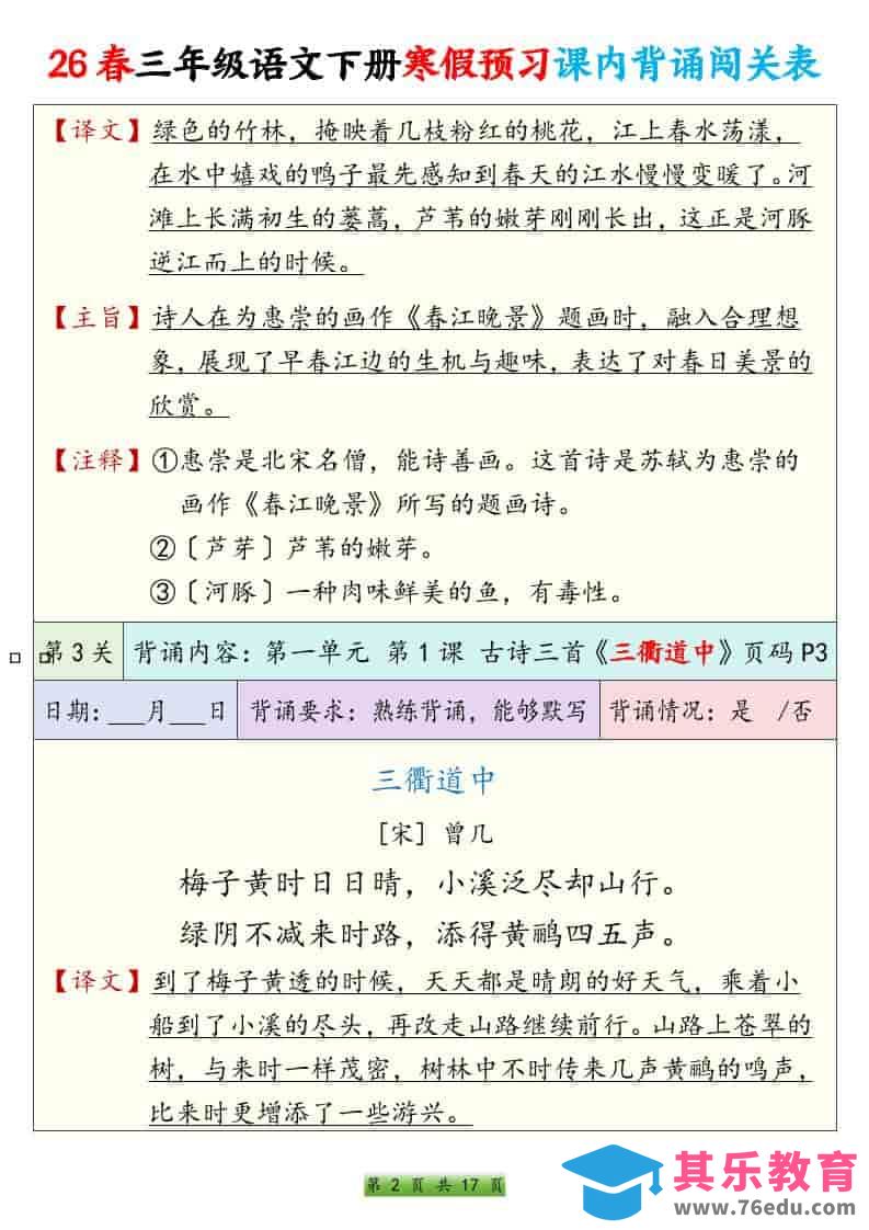 三年级下语文寒假预习课内背诵表中小学资料库1年前发布关注私信476三年级下语文寒假预习课内背诵表此内容为免费资源,请登录后查看¥0限时特惠¥99 登录查看免费资源 ——预览已结束,还剩15页未读——您已获得此文档下载权限,请点击底部下载完整文档 © 版权声明文章版权归作者所有,未经允许请勿转载。THE END三年级# 语文# 三年级 喜欢就支持一下吧点赞6 分享QQ空间微博QQ好友海报分享复制链接收藏