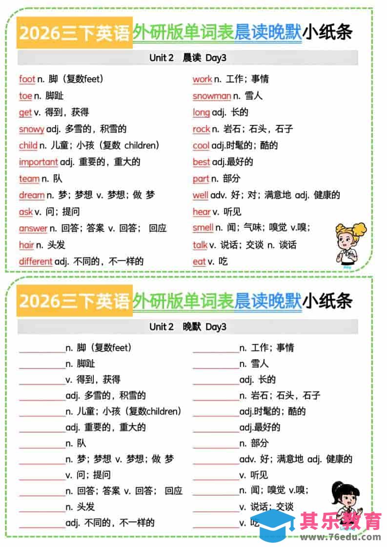 三年级下英语晨读晚默小纸条《外研版(三起)》中小学资料库1年前发布关注私信5010三年级下英语晨读晚默小纸条《外研版(三起)》此内容为免费资源,请登录后查看¥0限时特惠¥99 登录查看免费资源 ——预览已结束,还剩5页未读——您已获得此文档下载权限,请点击底部下载完整文档 © 版权声明文章版权归作者所有,未经允许请勿转载。THE END三年级# 三年级# 英语 喜欢就支持一下吧点赞10 分享QQ空间微博QQ好友海报分享复制链接收藏