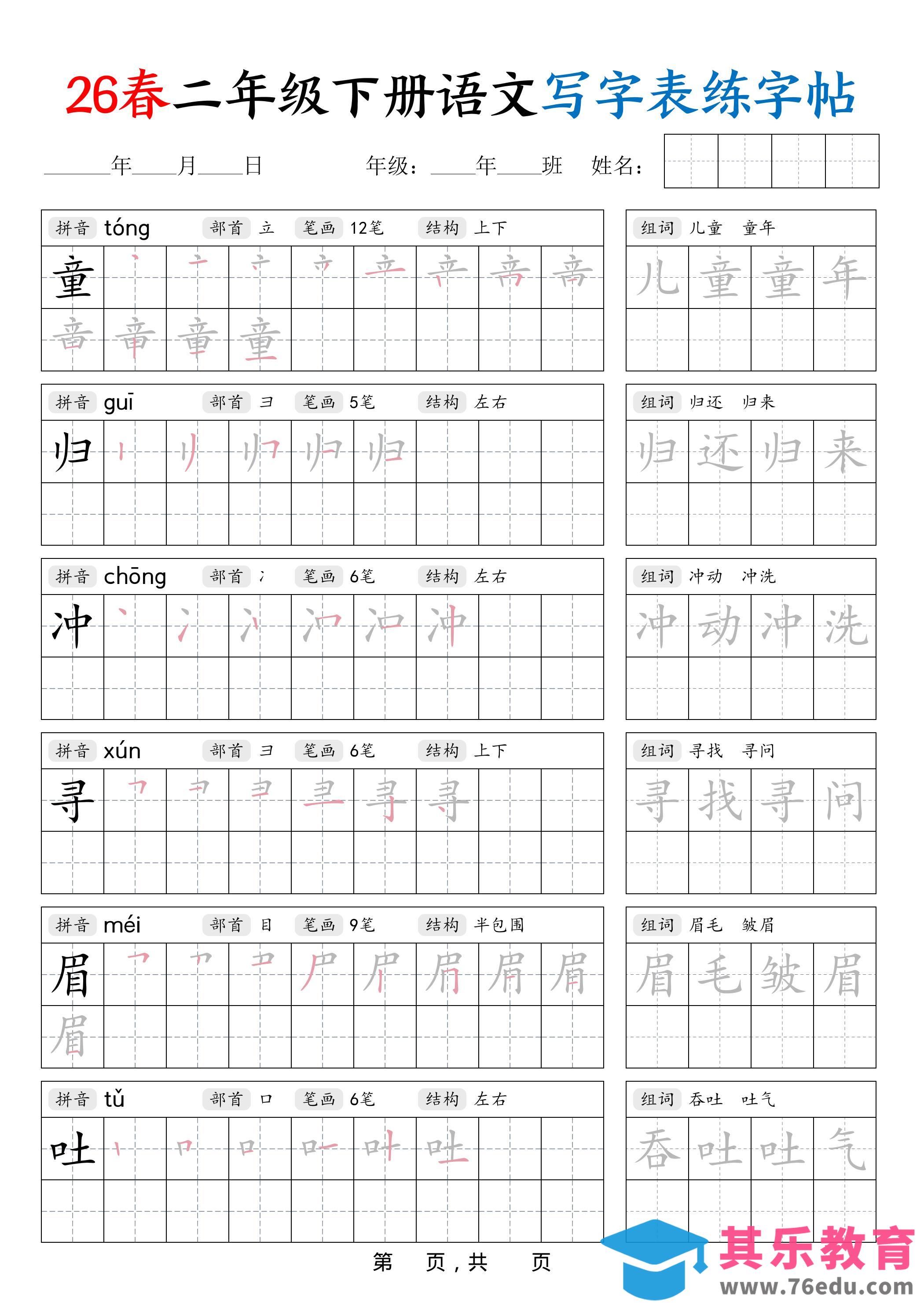 26春二下语文写字表练字帖(生字拼音笔顺组词)42页中小学资料库2年前发布关注私信261426春二下语文写字表练字帖(生字拼音笔顺组词)42页此内容为免费资源,请登录后查看¥0限时特惠¥99 登录查看免费资源 ——预览已结束,还剩40页未读——您已获得此文档下载权限,请点击底部下载完整文档 © 版权声明文章版权归作者所有,未经允许请勿转载。THE END二年级# 语文# 二年级 喜欢就支持一下吧点赞14 分享QQ空间微博QQ好友海报分享复制链接收藏