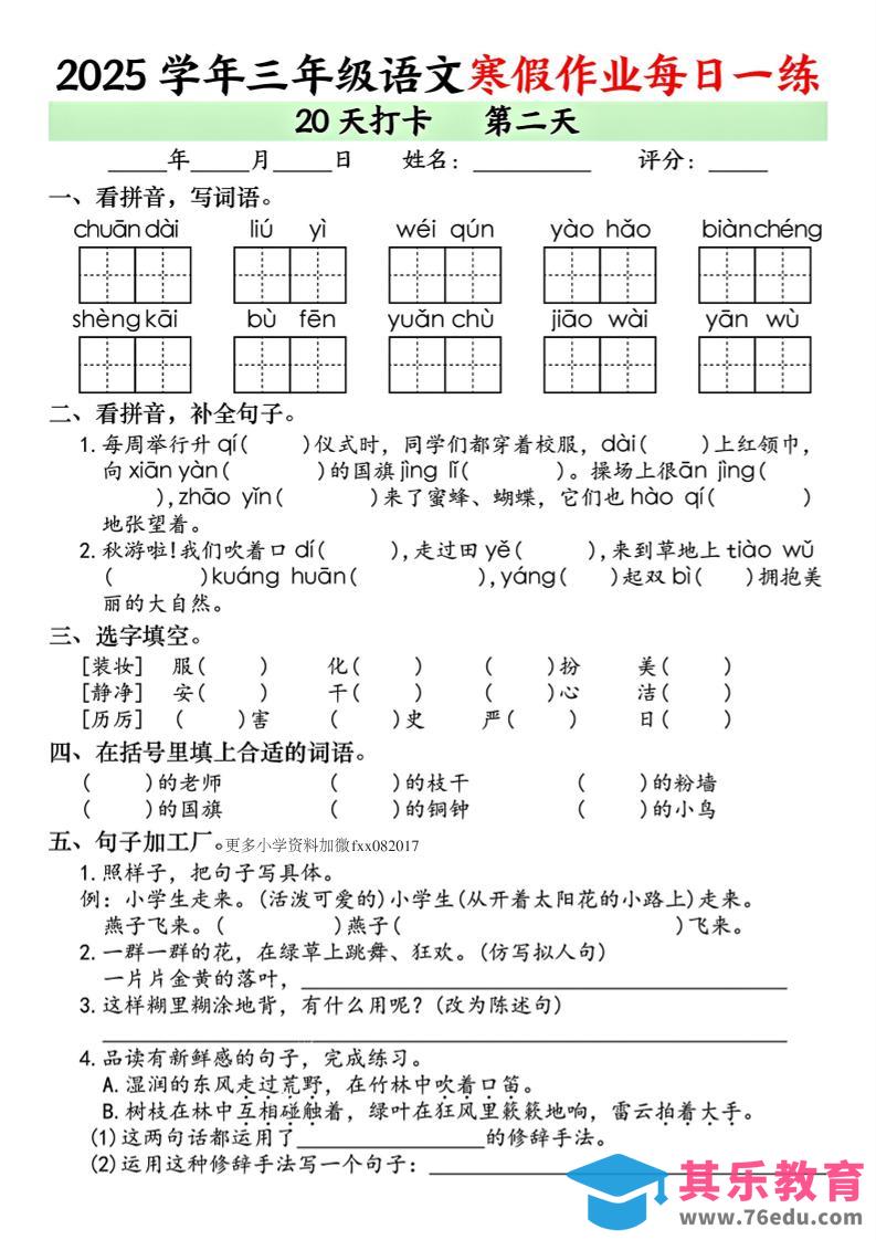 三年级上语文寒假作业每日一练(共20天)中小学资料库1年前发布关注私信4515三年级上语文寒假作业每日一练(共20天)此内容为免费资源,请登录后查看¥0限时特惠¥99 登录查看免费资源 ——预览已结束,还剩18页未读——您已获得此文档下载权限,请点击底部下载完整文档 © 版权声明文章版权归作者所有,未经允许请勿转载。THE END三年级# 语文# 三年级 喜欢就支持一下吧点赞15 分享QQ空间微博QQ好友海报分享复制链接收藏