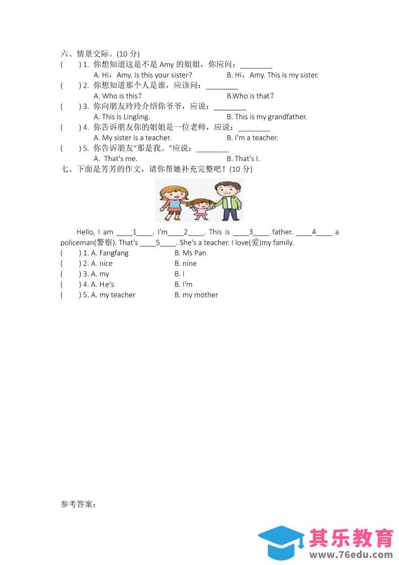 25新【外研三起】三上英语自测题-Unit5We’refamily自测题(含答案)中小学资料库2年前发布关注私信211525新【外研三起】三上英语自测题-Unit5We’refamily自测题(含答案)此内容为免费资源,请登录后查看¥0限时特惠¥99 登录查看免费资源 ——预览已结束,还剩1页未读——您已获得此文档下载权限,请点击底部下载完整文档 © 版权声明文章版权归作者所有,未经允许请勿转载。THE END三年级# 三年级# 英语 喜欢就支持一下吧点赞15 分享QQ空间微博QQ好友海报分享复制链接收藏