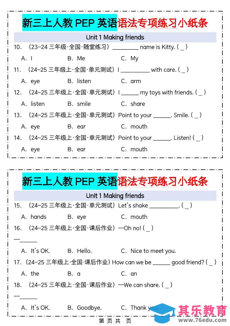新三上人教PEP英语语法专项练习小纸条(含答案28页)中小学资料库9个月前发布关注私信3112新三上人教PEP英语语法专项练习小纸条(含答案28页)此内容为免费资源,请登录后查看¥0限时特惠¥99 登录查看免费资源 ——预览已结束,还剩26页未读——您已获得此文档下载权限,请点击底部下载完整文档 © 版权声明文章版权归作者所有,未经允许请勿转载。THE END三年级# 三年级# 英语 喜欢就支持一下吧点赞12 分享QQ空间微博QQ好友海报分享复制链接收藏