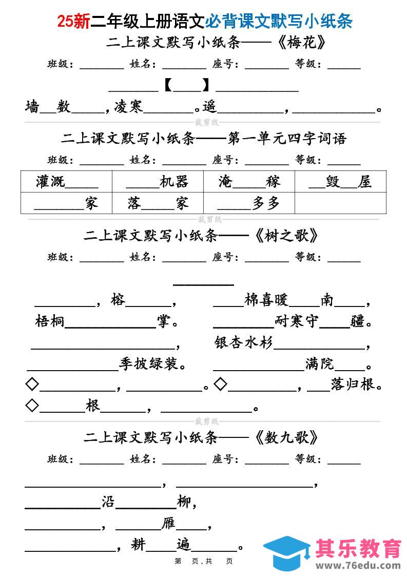 25新二上语文必背课文默写小纸条(含答案15页)中小学资料库2年前发布关注私信37525新二上语文必背课文默写小纸条(含答案15页)此内容为免费资源,请登录后查看¥0限时特惠¥99 登录查看免费资源 ——预览已结束,还剩13页未读——您已获得此文档下载权限,请点击底部下载完整文档 © 版权声明文章版权归作者所有,未经允许请勿转载。THE END二年级# 语文# 二年级 喜欢就支持一下吧点赞5 分享QQ空间微博QQ好友海报分享复制链接收藏