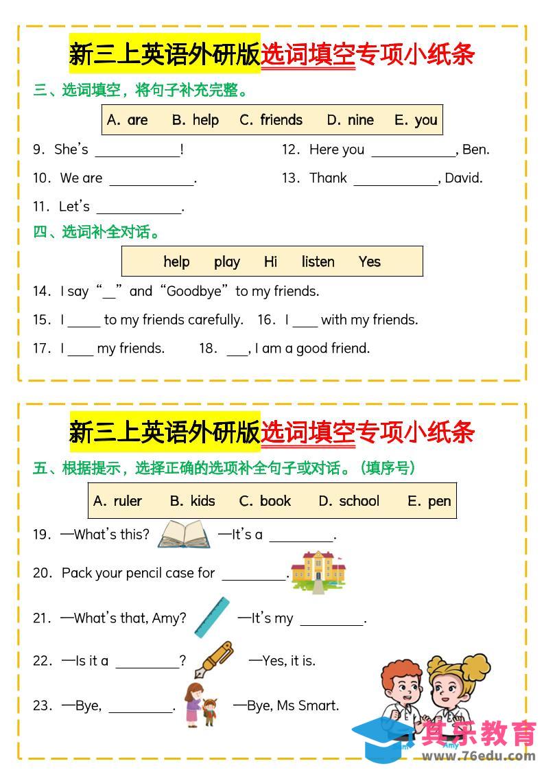 新三上英语外研版选词填空专项小纸条中小学资料库9个月前发布关注私信3915新三上英语外研版选词填空专项小纸条此内容为免费资源,请登录后查看¥0限时特惠¥99 登录查看免费资源 ——预览已结束,还剩6页未读——您已获得此文档下载权限,请点击底部下载完整文档 © 版权声明文章版权归作者所有,未经允许请勿转载。THE END三年级# 三年级# 英语 喜欢就支持一下吧点赞15 分享QQ空间微博QQ好友海报分享复制链接收藏