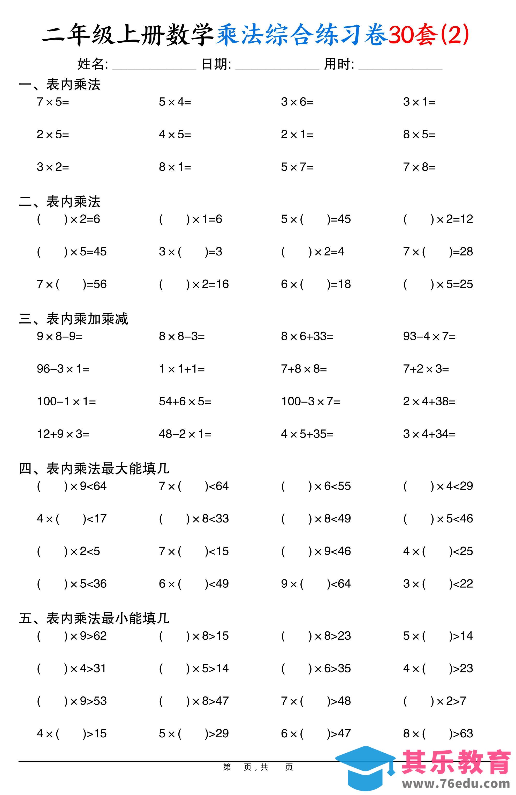 二上数学乘法综合练习卷30套(表内乘法口算、乘加乘减、最大填几、最小填几)30页中小学资料库2年前发布关注私信365二上数学乘法综合练习卷30套(表内乘法口算、乘加乘减、最大填几、最小填几)30页此内容为免费资源,请登录后查看¥0限时特惠¥99 登录查看免费资源 ——预览已结束,还剩28页未读——开通会员后可免费下载高清完整文档 © 版权声明文章版权归作者所有,未经允许请勿转载。THE END二年级# 数学# 二年级 喜欢就支持一下吧点赞5 分享QQ空间微博QQ好友海报分享复制链接收藏