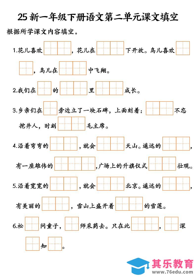 25新一年级下册语文课文填空–3中小学资料库1个月前发布关注私信39625新一年级下册语文课文填空–3此内容为免费资源,请登录后查看¥0限时特惠¥99 登录查看免费资源 ——预览已结束,还剩2页未读——开通会员后可免费下载高清完整文档 © 版权声明文章版权归作者所有,未经允许请勿转载。THE END一年级# 语文# 一年级 喜欢就支持一下吧点赞6 分享QQ空间微博QQ好友海报分享复制链接收藏