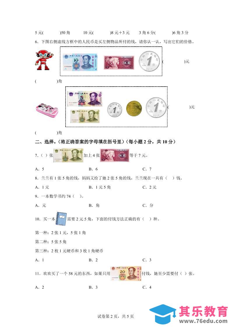 青岛63版数学一年级下册第六单元《人民币的认识》单元测试卷中小学资料库10个月前发布关注私信319青岛63版数学一年级下册第六单元《人民币的认识》单元测试卷此内容为免费资源,请登录后查看¥0限时特惠¥99 登录查看免费资源 ——预览已结束,还剩10页未读——开通会员后可免费下载高清完整文档 © 版权声明文章版权归作者所有,未经允许请勿转载。THE END一年级# 数学# 一年级 喜欢就支持一下吧点赞9 分享QQ空间微博QQ好友海报分享复制链接收藏