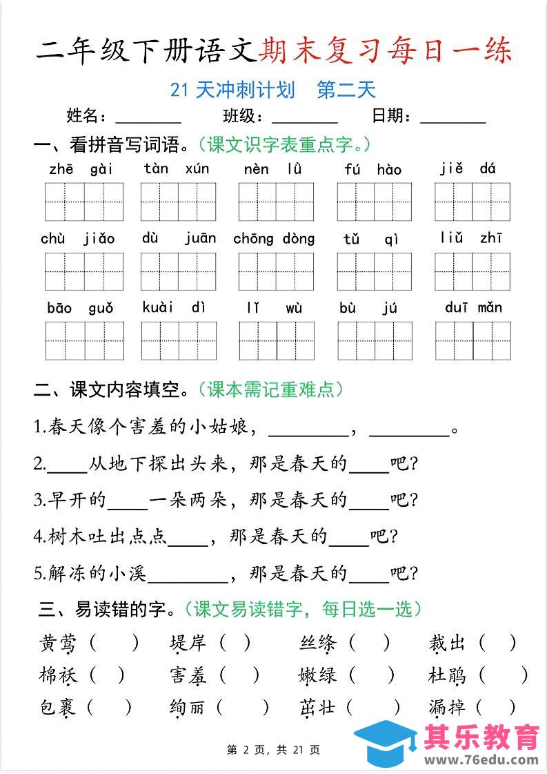 二下语文期末复习每日一练21天冲刺计划(21页)中小学资料库10个月前发布关注私信419二下语文期末复习每日一练21天冲刺计划(21页)此内容为免费资源,请登录后查看¥0限时特惠¥99 登录查看免费资源 ——预览已结束,还剩19页未读——开通会员后可免费下载高清完整文档 © 版权声明文章版权归作者所有,未经允许请勿转载。THE END二年级# 语文# 二年级 喜欢就支持一下吧点赞9 分享QQ空间微博QQ好友海报分享复制链接收藏