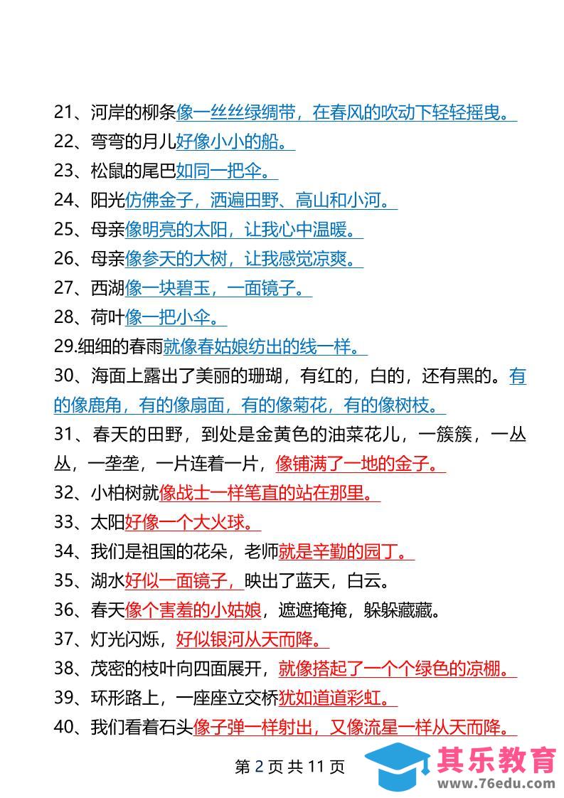 二年级下册语文仿写拟人比喻句整理汇总12页中小学资料库2年前发布关注私信439二年级下册语文仿写拟人比喻句整理汇总12页此内容为免费资源,请登录后查看¥0限时特惠¥99 登录查看免费资源 ——预览已结束,还剩10页未读——开通会员后可免费下载高清完整文档 © 版权声明文章版权归作者所有,未经允许请勿转载。THE END二年级# 语文# 二年级 喜欢就支持一下吧点赞9 分享QQ空间微博QQ好友海报分享复制链接收藏