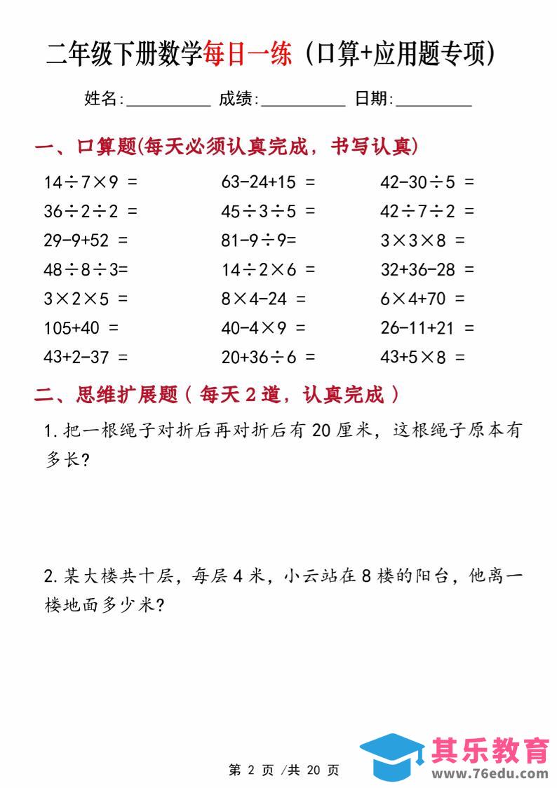 二年级下册数学每日一练(口算+思维应用题20套)20页-高清无水印完整版本中小学资料库2年前发布关注私信398二年级下册数学每日一练(口算+思维应用题20套)20页-高清无水印完整版本此内容为免费资源,请登录后查看¥0限时特惠¥99 登录查看免费资源 ——预览已结束,还剩18页未读——开通会员后可免费下载高清完整文档 © 版权声明文章版权归作者所有,未经允许请勿转载。THE END二年级# 数学# 二年级 喜欢就支持一下吧点赞8 分享QQ空间微博QQ好友海报分享复制链接收藏