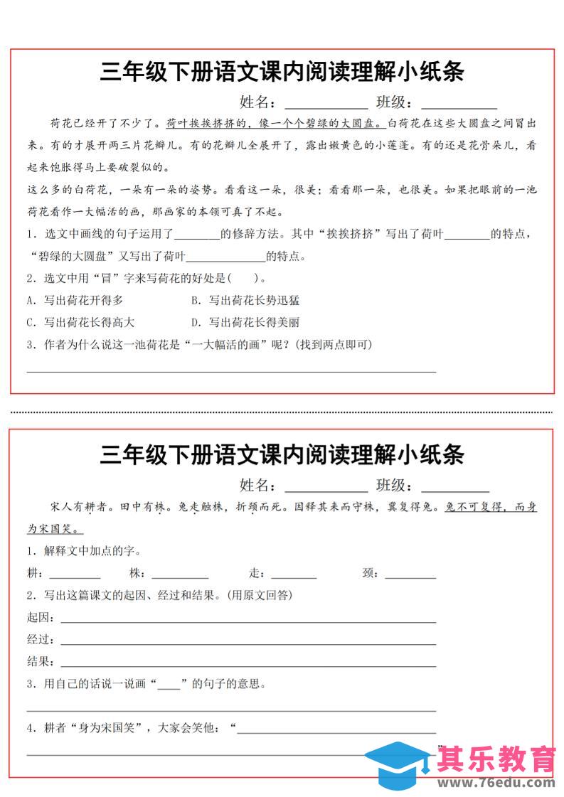 三年级下册语文课内阅读理解小纸条13页中小学资料库2年前发布关注私信4014三年级下册语文课内阅读理解小纸条13页此内容为免费资源,请登录后查看¥0限时特惠¥99 登录查看免费资源 ——预览已结束,还剩11页未读——开通会员后可免费下载高清完整文档 © 版权声明文章版权归作者所有,未经允许请勿转载。THE END三年级# 语文# 三年级 喜欢就支持一下吧点赞14 分享QQ空间微博QQ好友海报分享复制链接收藏