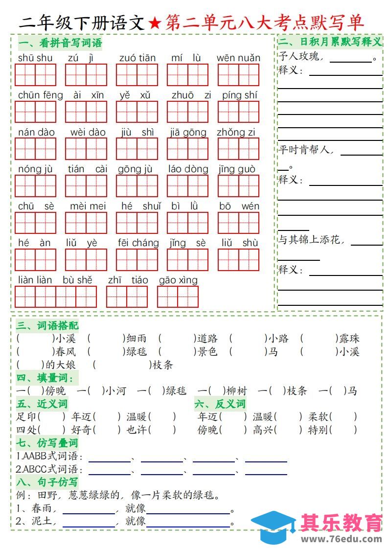 二年级下册语文八大考点默写单空白中小学资料库6个月前发布关注私信3915二年级下册语文八大考点默写单空白此内容为免费资源,请登录后查看¥0限时特惠¥99 登录查看免费资源 ——预览已结束,还剩6页未读——开通会员后可免费下载高清完整文档 © 版权声明文章版权归作者所有,未经允许请勿转载。THE END二年级# 语文# 二年级 喜欢就支持一下吧点赞15 分享QQ空间微博QQ好友海报分享复制链接收藏
