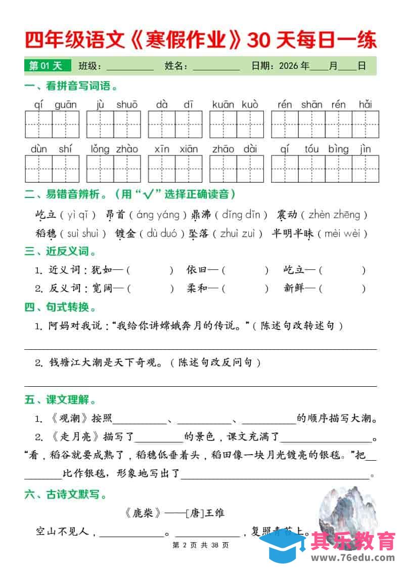 四年级下语文寒假作业每日一练30天中小学资料库11天前发布关注私信2310四年级下语文寒假作业每日一练30天此内容为免费资源,请登录后查看¥0限时特惠¥99 登录查看免费资源 ——预览已结束,还剩36页未读——您已获得此文档下载权限,请点击底部下载完整文档 © 版权声明文章版权归作者所有,未经允许请勿转载。THE END四年级# 语文# 四年级 喜欢就支持一下吧点赞10 分享QQ空间微博QQ好友海报分享复制链接收藏
