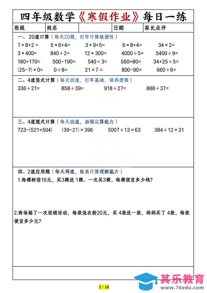 四年级上数学寒假作业每日一练(共20天)中小学资料库2年前发布关注私信267四年级上数学寒假作业每日一练(共20天)此内容为免费资源,请登录后查看¥0限时特惠¥99 登录查看免费资源 ——预览已结束,还剩15页未读——您已获得此文档下载权限,请点击底部下载完整文档 © 版权声明文章版权归作者所有,未经允许请勿转载。THE END四年级# 数学# 四年级 喜欢就支持一下吧点赞7 分享QQ空间微博QQ好友海报分享复制链接收藏