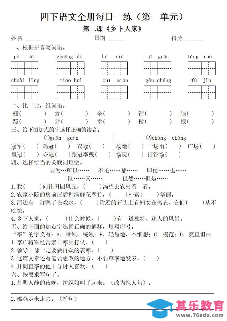 四年级下册语文全册一课一练(附答案62页)中小学资料库2年前发布关注私信215四年级下册语文全册一课一练(附答案62页)此内容为免费资源,请登录后查看¥0限时特惠¥99 登录查看免费资源 ——预览已结束,还剩60页未读——您已获得此文档下载权限,请点击底部下载完整文档 © 版权声明文章版权归作者所有,未经允许请勿转载。THE END四年级# 语文# 四年级 喜欢就支持一下吧点赞5 分享QQ空间微博QQ好友海报分享复制链接收藏
