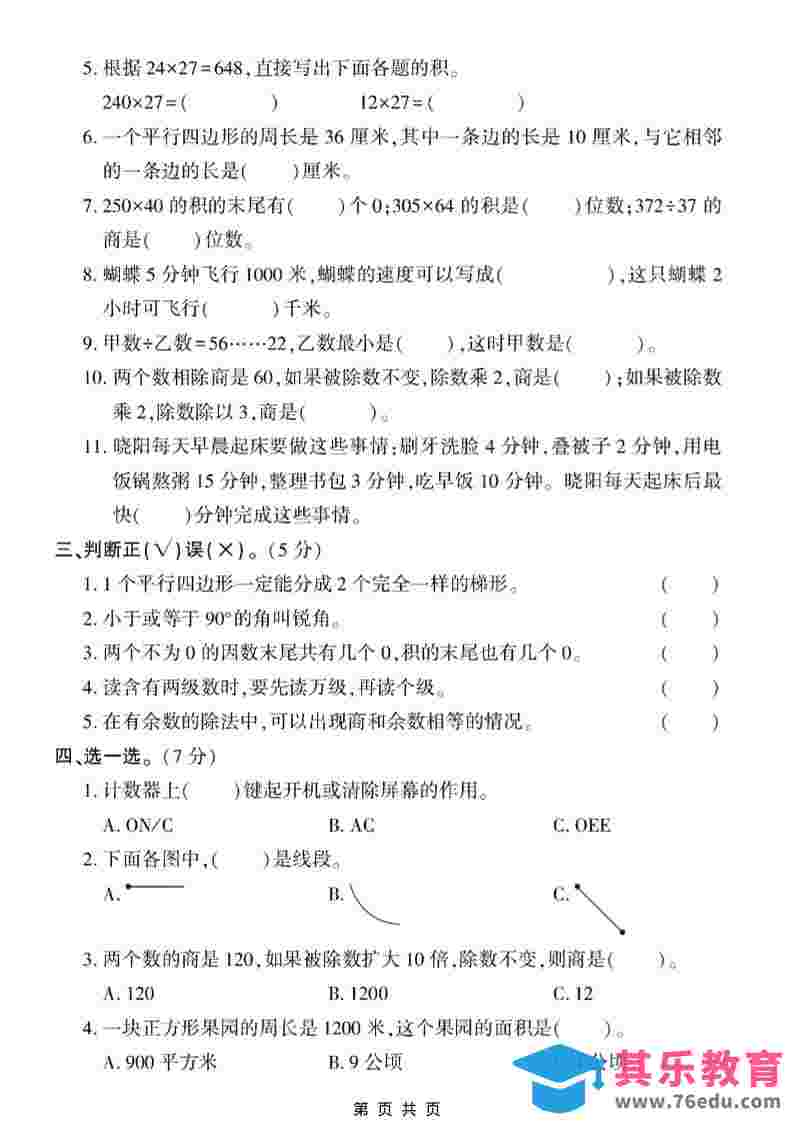 四年级上数学期末真题测试卷1《人教版》中小学资料库11个月前发布关注私信2510四年级上数学期末真题测试卷1《人教版》此内容为免费资源,请登录后查看¥0限时特惠¥99 登录查看免费资源 ——预览已结束,还剩2页未读——您已获得此文档下载权限,请点击底部下载完整文档 © 版权声明文章版权归作者所有,未经允许请勿转载。THE END四年级# 数学# 四年级 喜欢就支持一下吧点赞10 分享QQ空间微博QQ好友海报分享复制链接收藏