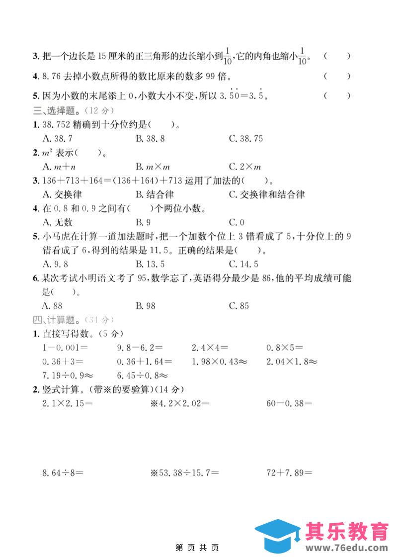 四年级上数学数与代数专项检测卷2《青岛54版》中小学资料库9个月前发布关注私信329四年级上数学数与代数专项检测卷2《青岛54版》此内容为免费资源,请登录后查看¥0限时特惠¥99 登录查看免费资源 ——预览已结束,还剩3页未读——您已获得此文档下载权限,请点击底部下载完整文档 © 版权声明文章版权归作者所有,未经允许请勿转载。THE END四年级# 数学# 四年级 喜欢就支持一下吧点赞9 分享QQ空间微博QQ好友海报分享复制链接收藏