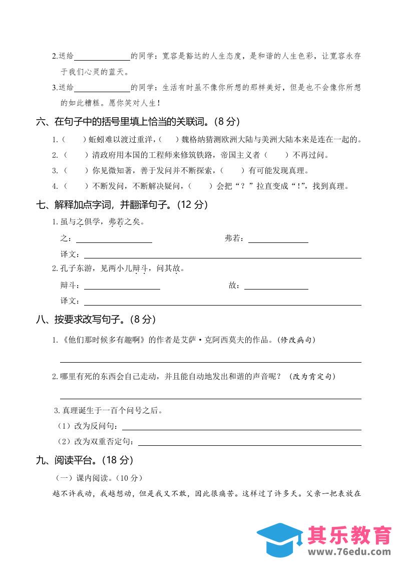 六下语文第三次月考(五、六单元)中小学资料库4个月前发布关注私信418六下语文第三次月考(五、六单元)此内容为免费资源,请登录后查看¥0限时特惠¥99 登录查看免费资源 ——预览已结束,还剩3页未读——开通会员后可免费下载高清完整文档 © 版权声明文章版权归作者所有,未经允许请勿转载。THE END六年级# 语文# 六年级 喜欢就支持一下吧点赞8 分享QQ空间微博QQ好友海报分享复制链接收藏