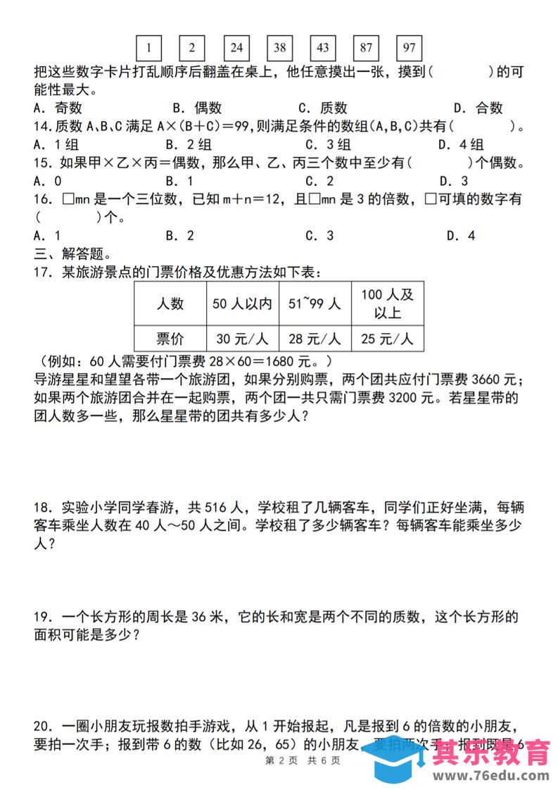 【人教版】五年级下册数学典型例题与相关拓展(2-6因数与倍数综合应用三)中小学资料库57天前发布关注私信4115【人教版】五年级下册数学典型例题与相关拓展(2-6因数与倍数综合应用三)此内容为免费资源,请登录后查看¥0限时特惠¥99 登录查看免费资源 ——预览已结束,还剩4页未读——开通会员后可免费下载高清完整文档 © 版权声明文章版权归作者所有,未经允许请勿转载。THE END五年级# 数学# 五年级 喜欢就支持一下吧点赞15 分享QQ空间微博QQ好友海报分享复制链接收藏