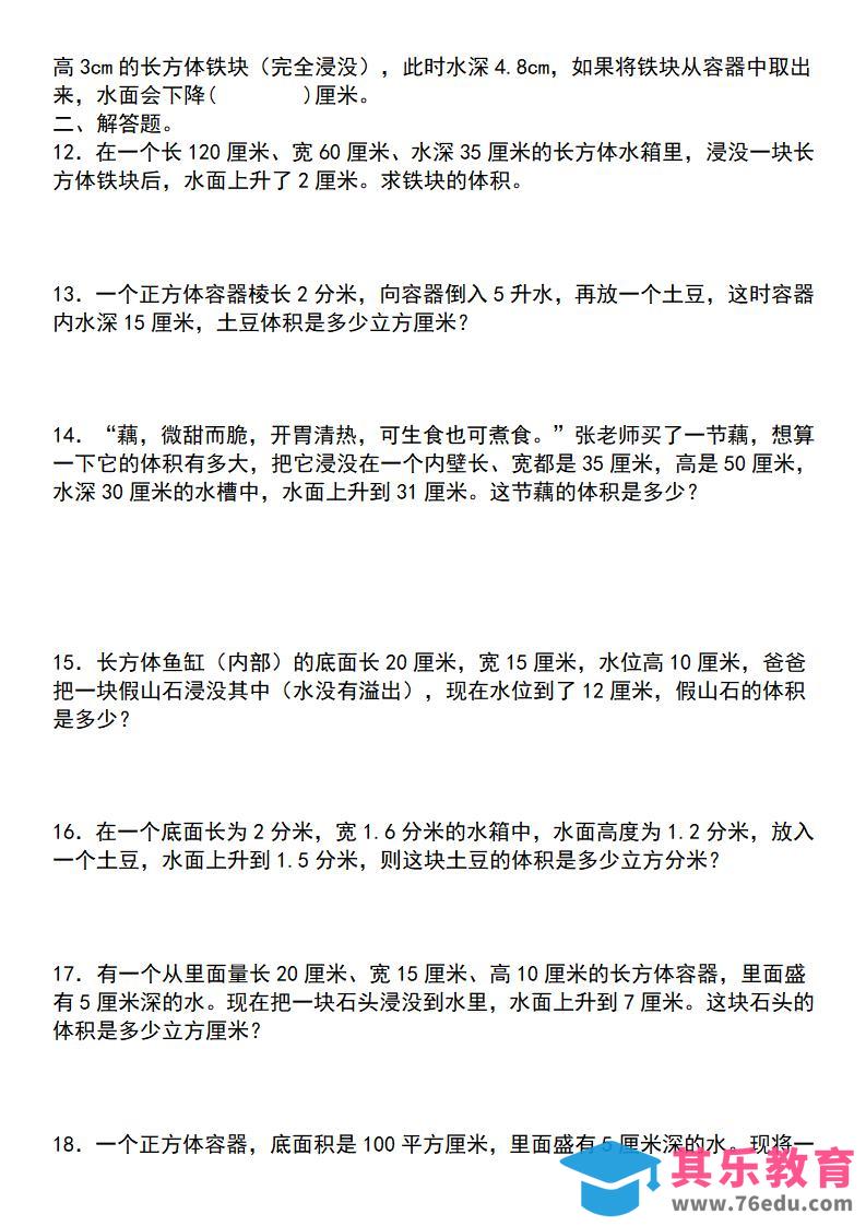 【通用版】五年级下册数学典型例题与相关拓展(3-2排水法求不规则物体的体积“一般问题”)中小学资料库2年前发布关注私信2411【通用版】五年级下册数学典型例题与相关拓展(3-2排水法求不规则物体的体积“一般问题”)此内容为免费资源,请登录后查看¥0限时特惠¥99 登录查看免费资源 ——预览已结束,还剩9页未读——开通会员后可免费下载高清完整文档 © 版权声明文章版权归作者所有,未经允许请勿转载。THE END五年级# 数学# 五年级 喜欢就支持一下吧点赞11 分享QQ空间微博QQ好友海报分享复制链接收藏
