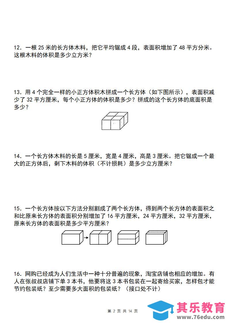 【通用版】五年级下册数学典型例题与相关拓展(3-3长方体和正方体的表面积增减变化问题)中小学资料库2年前发布关注私信3713【通用版】五年级下册数学典型例题与相关拓展(3-3长方体和正方体的表面积增减变化问题)此内容为免费资源,请登录后查看¥0限时特惠¥99 登录查看免费资源 ——预览已结束,还剩12页未读——开通会员后可免费下载高清完整文档 © 版权声明文章版权归作者所有,未经允许请勿转载。THE END五年级# 数学# 五年级 喜欢就支持一下吧点赞13 分享QQ空间微博QQ好友海报分享复制链接收藏
