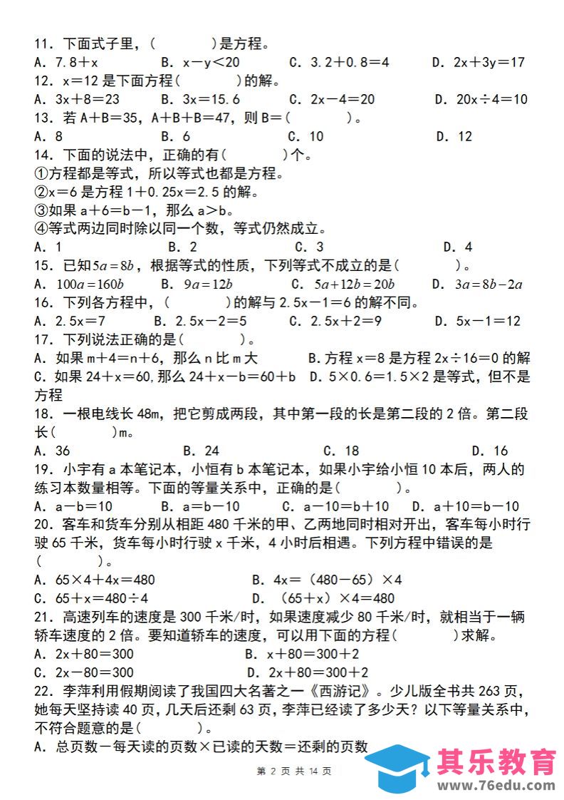 【苏教版】五下数学简易方程的应用小题狂练中小学资料库2年前发布关注私信216【苏教版】五下数学简易方程的应用小题狂练此内容为免费资源,请登录后查看¥0限时特惠¥99 登录查看免费资源 ——预览已结束,还剩12页未读——开通会员后可免费下载高清完整文档 © 版权声明文章版权归作者所有,未经允许请勿转载。THE END五年级# 数学# 五年级 喜欢就支持一下吧点赞6 分享QQ空间微博QQ好友海报分享复制链接收藏
