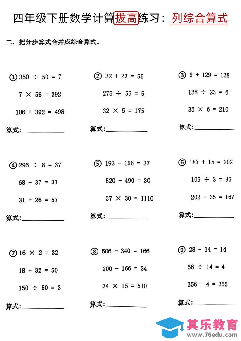 四下《数学计算拔高练习列综合算式(树状图)》中小学资料库1年前发布关注私信266四下《数学计算拔高练习列综合算式(树状图)》此内容为免费资源,请登录后查看¥0限时特惠¥99 登录查看免费资源 ——预览已结束,还剩3页未读——开通会员后可免费下载高清完整文档 © 版权声明文章版权归作者所有,未经允许请勿转载。THE END四年级# 数学# 四年级 喜欢就支持一下吧点赞6 分享QQ空间微博QQ好友海报分享复制链接收藏